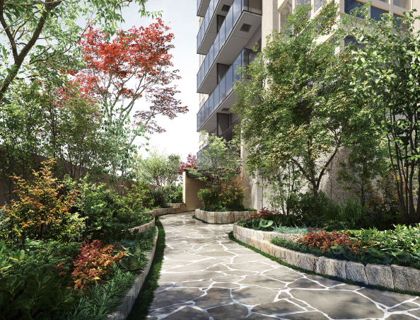 グランドメゾン(以下GM)伏見があるのはこの近く。マンションやオフィスなどのビルが並ぶエリアで美しい植栽が街にうるおいを与えています。