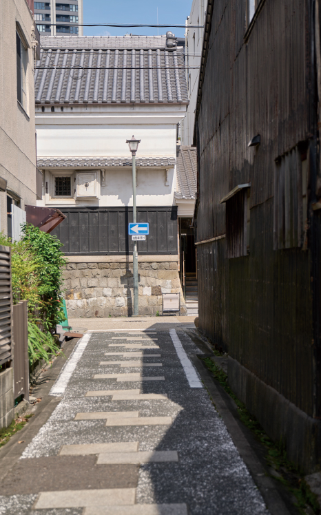 四間道エリアでは、街歩きの好奇心を刺激する狭い路地に出会えます。