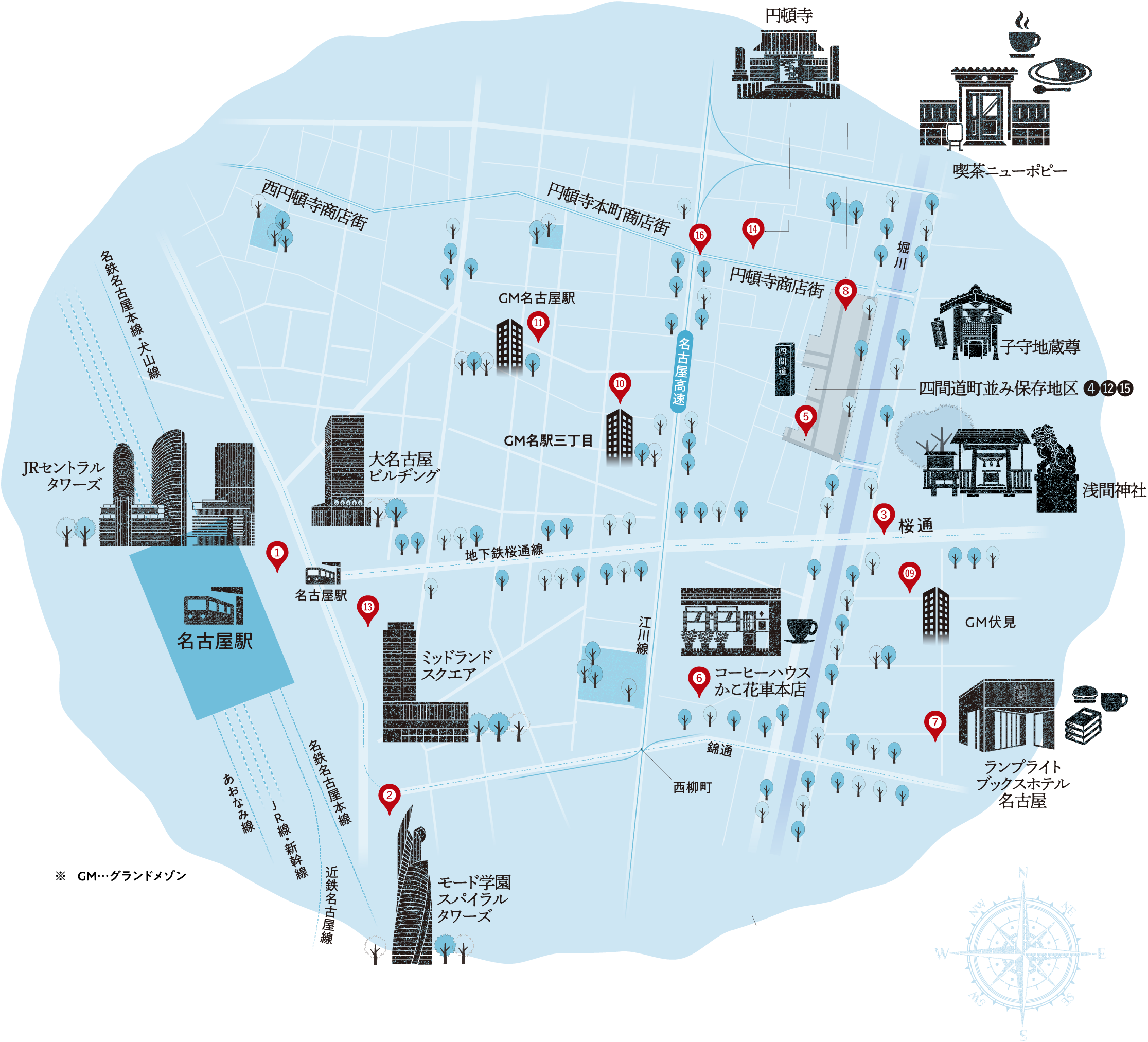 今回の散歩道では、そんな活気あふれる名古屋駅周辺と名古屋発展の歴史が今も息づく四間道エリアを同時に楽しんでみましょう。