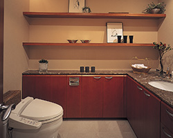 ここ数年、住まい手のニーズが多様になり、バスルームの自由度が増し、設備、器具も進歩しました。しかしそれは空間を構成するひとつの要素にすぎません。これからは素材・プロポーション・機能、採光・通風などトータルに気をつかい、さわやかな見た目、心地よい手触りなど五感すべてににやさしい空間を創ることが大切だと思っています。パウダールーム、バスルームという空間は、健康や安らぎを求める風潮の中で今後ますます豊かな空間になっていくでしょう。