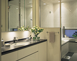 我々が集合住宅に提案するものの中で最近とても大切にしているのがパウダールームとバスルームで、使い勝手、インテリアなどトータルな住宅設計を心がけています。