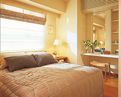 静かで落ち着いた寝室の特徴を生かして…。