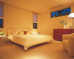 従来の寝室のイメージとは違う提案も最近の傾向。ゆとりある寝室は、リラックスルームとしても使いたいもの。