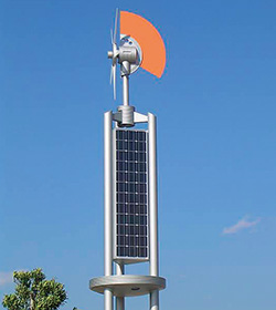 風力・太陽光発電 「グランドメゾン星が丘山手」では環境対策の一環として外構照明の一部に風力・太陽光発電システムを採用。風力や太陽光の自然エネルギーを利用し、発電された電気を内部に装備された蓄電池に蓄電し、装備された照明を点灯したり、外部機器の電源として使用する独立電源システムです。