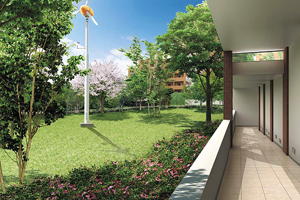「『グランドメゾン星が丘山手』では風車を設置しました。得られた電力は敷地内の街灯などに利用します。ただ“風まかせ”なので初期費用とランニングの収支を試算すると、わずかにマイナスという結果。設計者としては最低でもゼロでなければ採用できないと考えたのですが、営業サイドからの強い提案によって設置を決断しました」(前田)