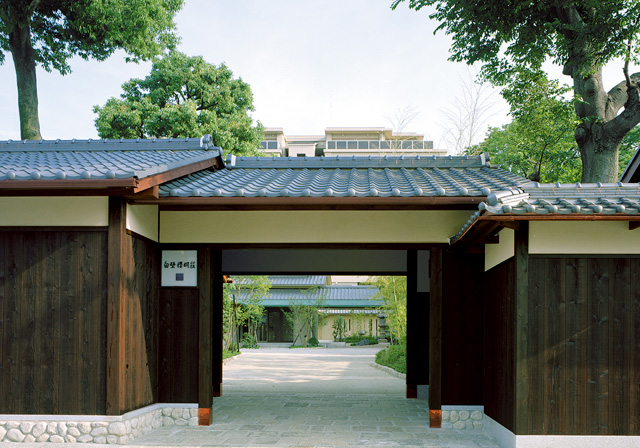グランドメゾン白壁櫻明荘歴史的建造物だった料亭の長屋門や庭をそのまま残す。