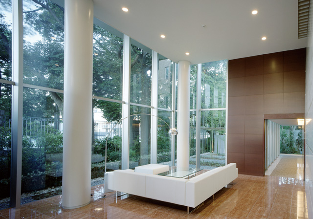 「またエントランスなどの共用部にも、窓を通して光と緑を取り込む吹き抜けを設けています。住まう人だけでなく来客者をも気持ち良く迎えてくれるでしょう。」(亀山)
