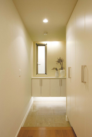 「また、機能面での工夫として『グランドメゾン東戸塚④』では、玄関にも窓を設け自然の光や風を採り入れています。夏は涼しい風が通り抜けますし、光が入ることで昼間は照明無しでも明るくエコにもつながる。それに朝、出掛ける時に玄関が明るければ、それだけで心地よく一日をスタートできるでしょう。」(亀山)