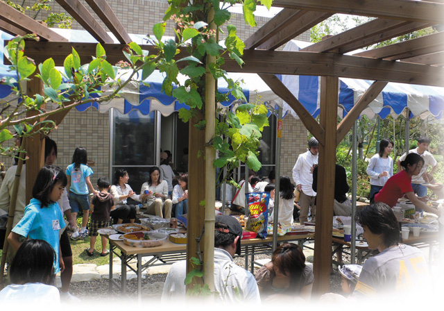 バーベキュー等を楽しむロッジが、敷地内に。”第3の場所”としての役割も担っている。
