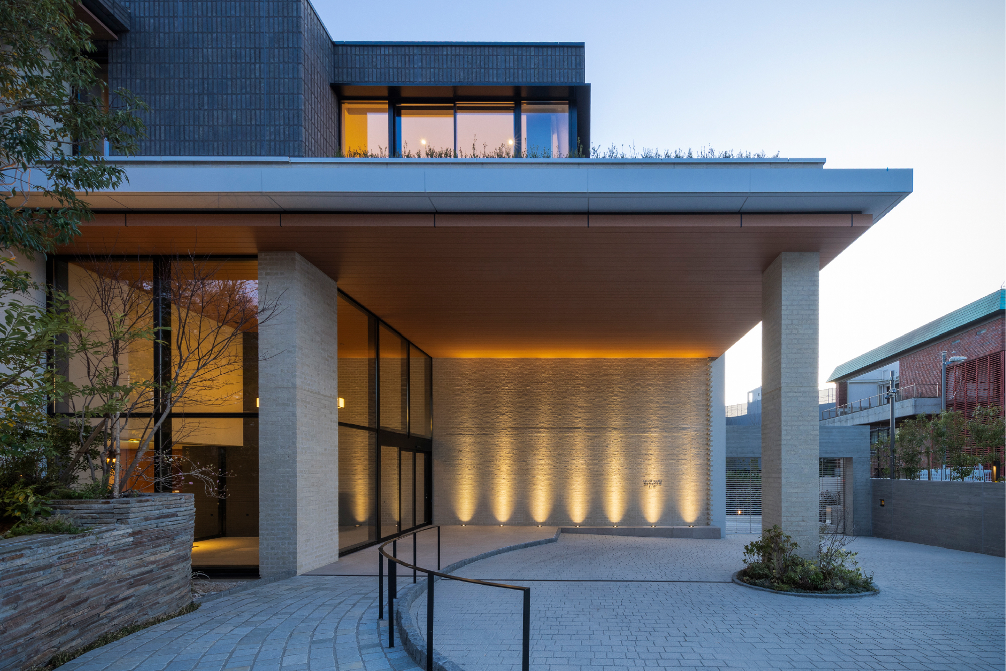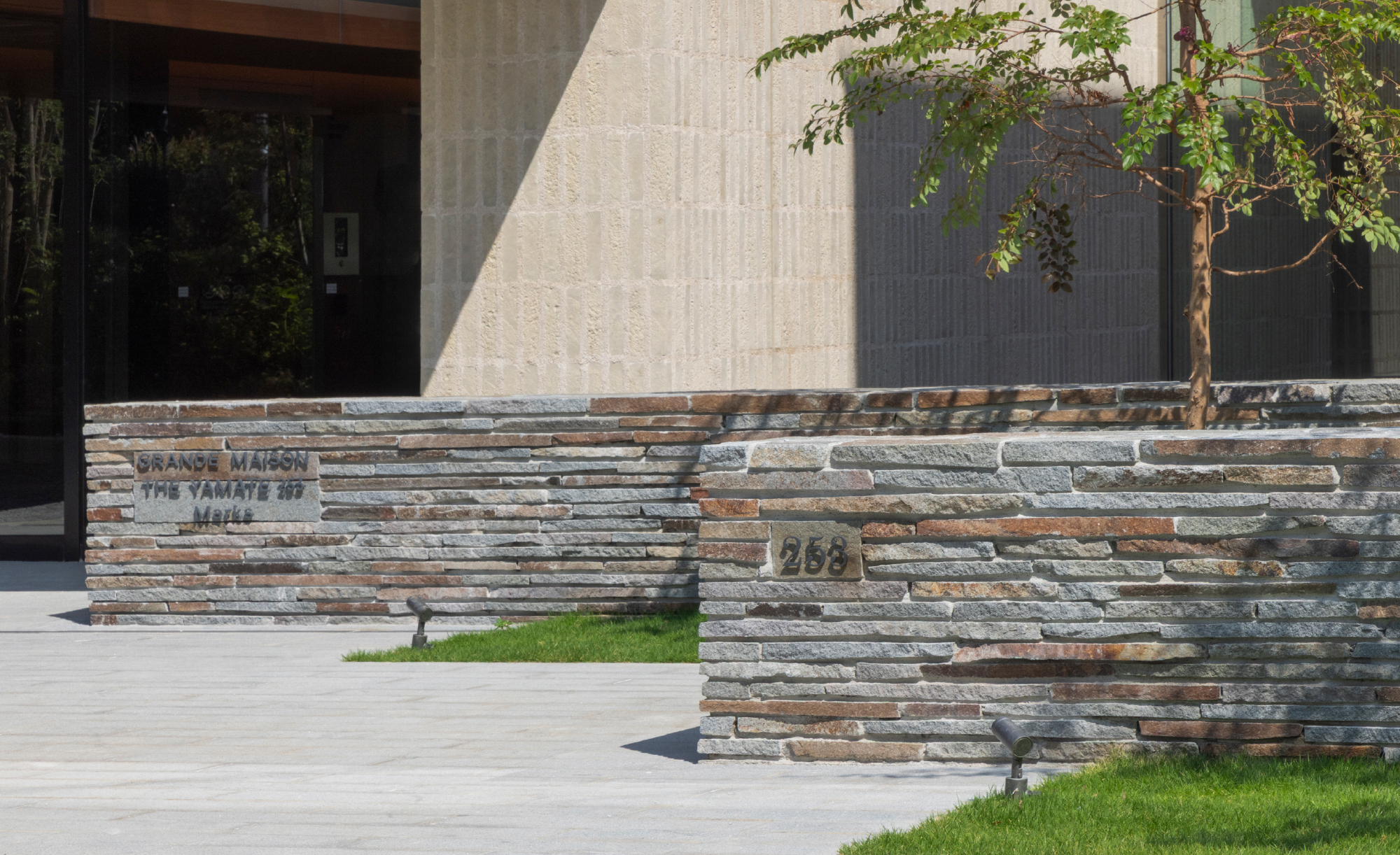 外構に用いたブラフ積みや小端積みは、山手特有の風景のエレメンツを継承する試みの一つ。