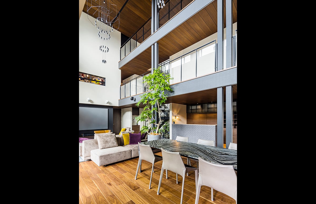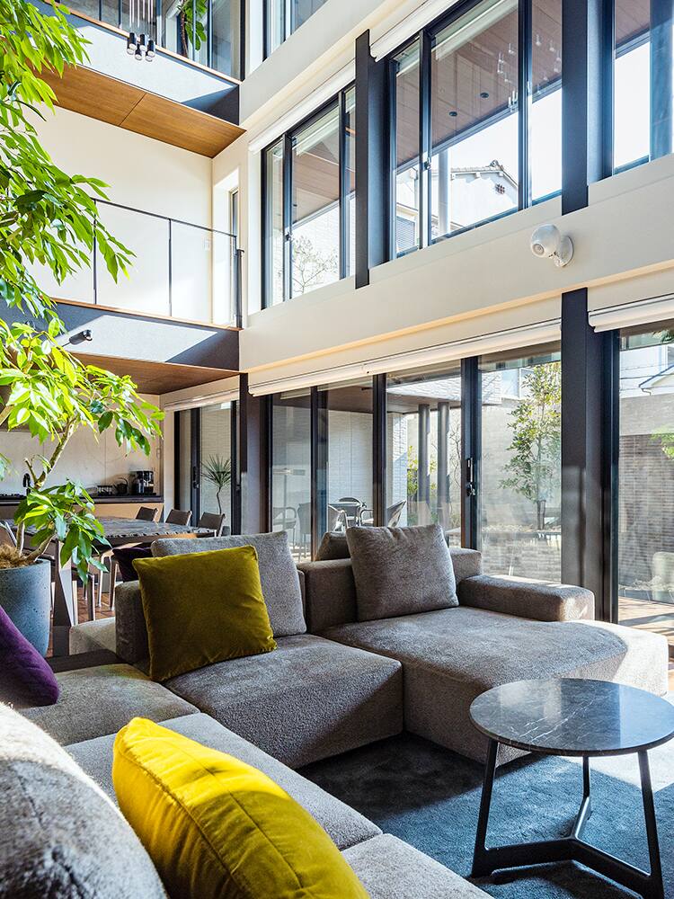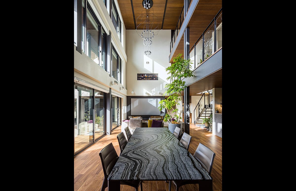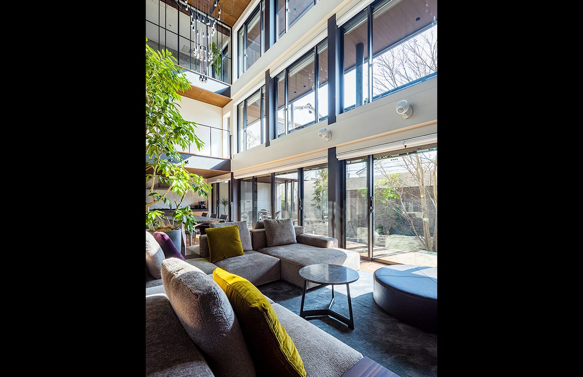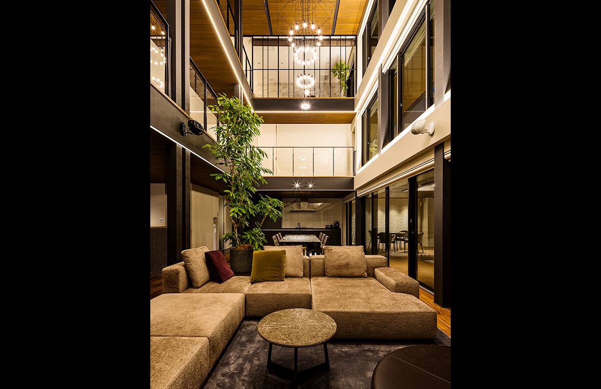TOPWORKS114 空域の家 CONCEPT 幹線道路から1本入った住宅密集地に建つ3階建て住宅。 隣接する家が多く、全面道路も狭く歩道もあり、落ち着かない環境の為、コの字型にした建物中央に緑地帯を設け、それを中心に部屋を構成しています。 緑地帯に向かって広がる3層吹抜けのLDKは圧巻で、外部からは想像できない開放感を実現しています。 照明計画にもこだわり、昼と夜で全く違う雰囲気を感じさせてくれます。 DESIGNER/COORDINATOR 竹中 敬介Keisuke Takenaka デザイナー 代表作品をみる WORKS一覧に戻る 「THE HOUSE」デジタル版 カタログプレゼント 邸宅実例カタログ「THE HOUSE」デジタル版プレミアムサイトをご覧頂いた皆様に限定プレゼントいたします。 「THE HOUSE」デジタル版ご請求はこちら