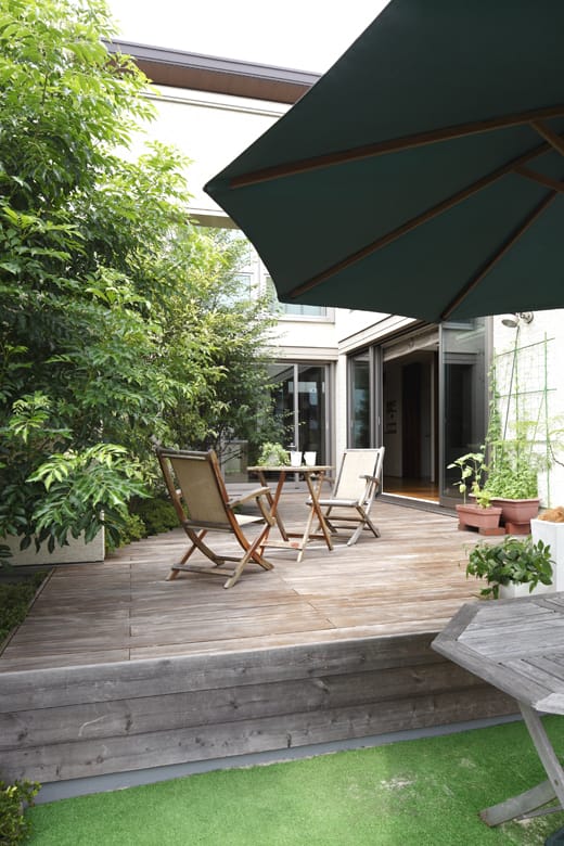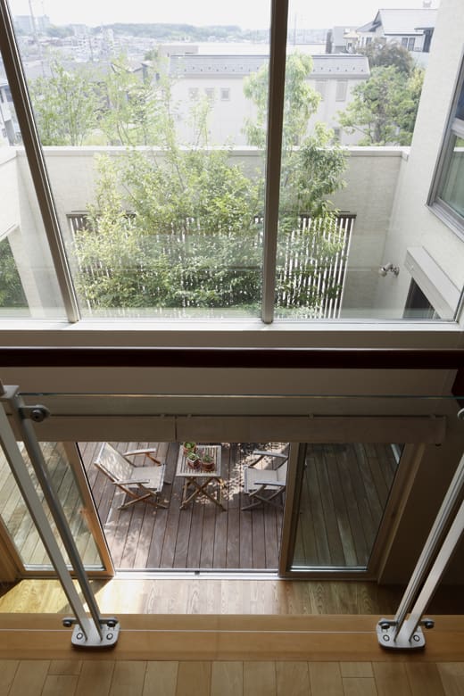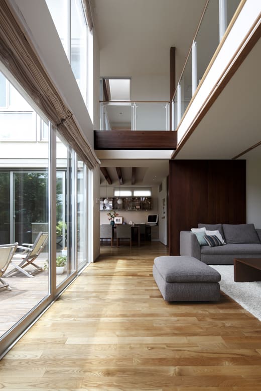 テラスを囲み、光と緑の眺望を存分に感じる吹き抜け
