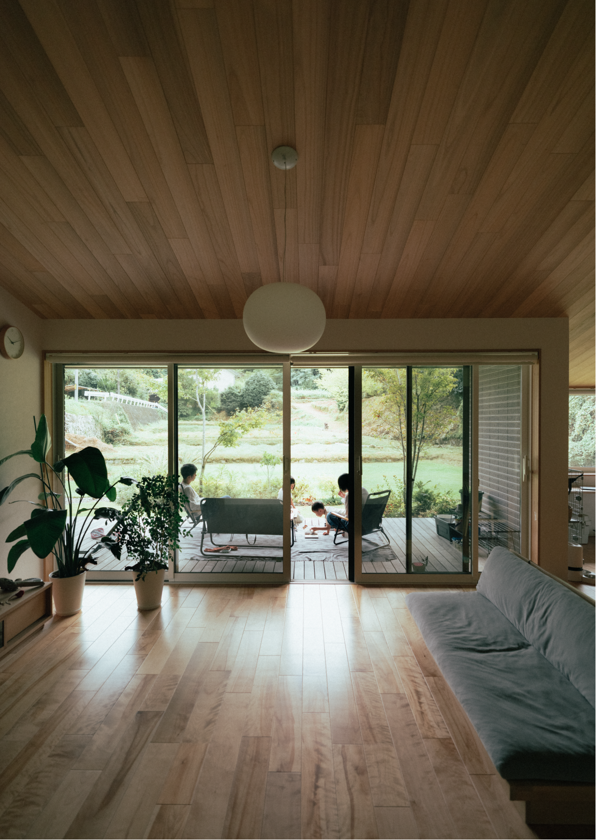 モダンなデザインながら、周りの畑や木々とも自然に馴染んでいて、とても気に入っています。まるで昔からあったようで、落ち着きます。