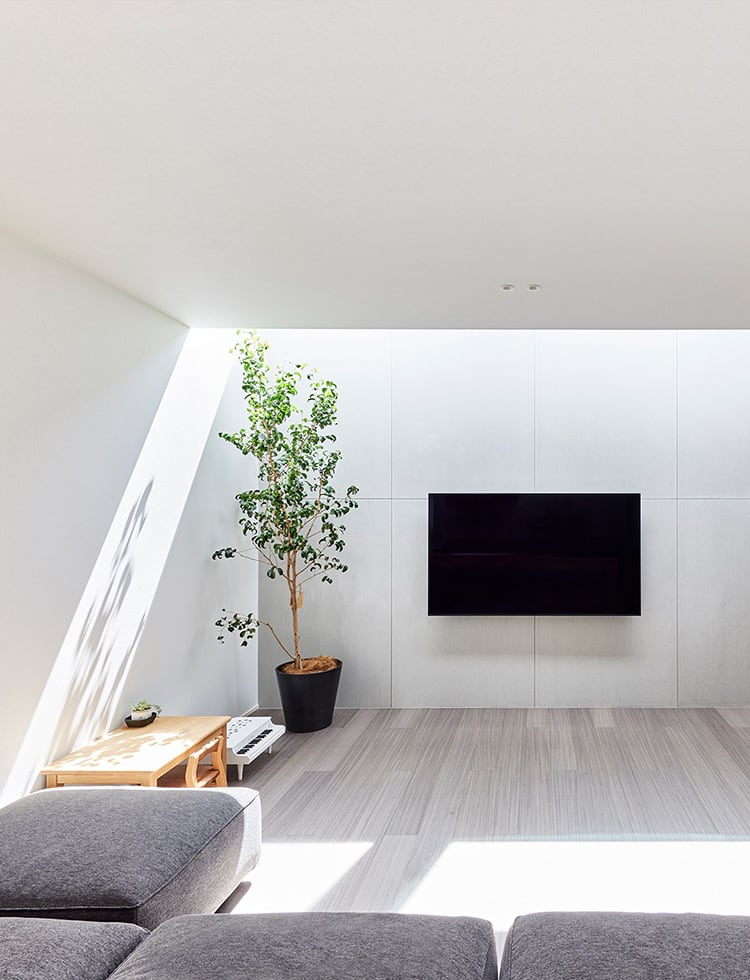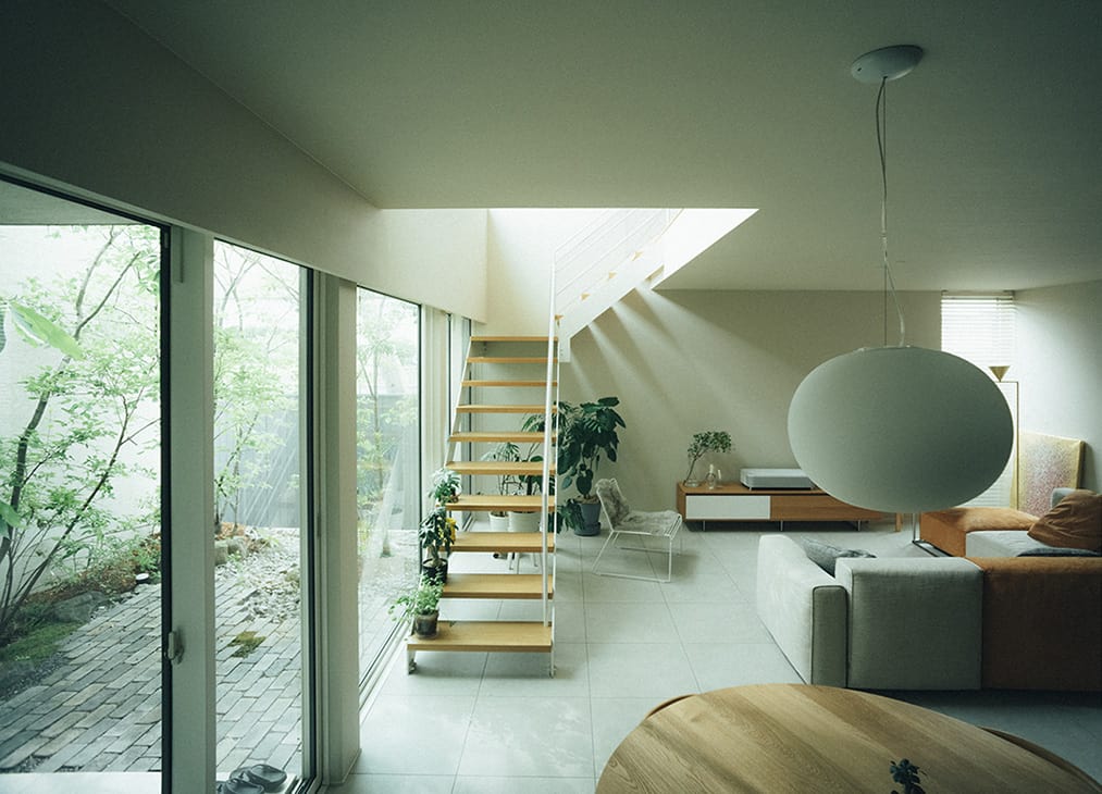 中庭に向かって開くことで、室内にいながら広がりを感じられるリビングにしました。外に出なくても、気分が切り替わる居場所として機能しています。