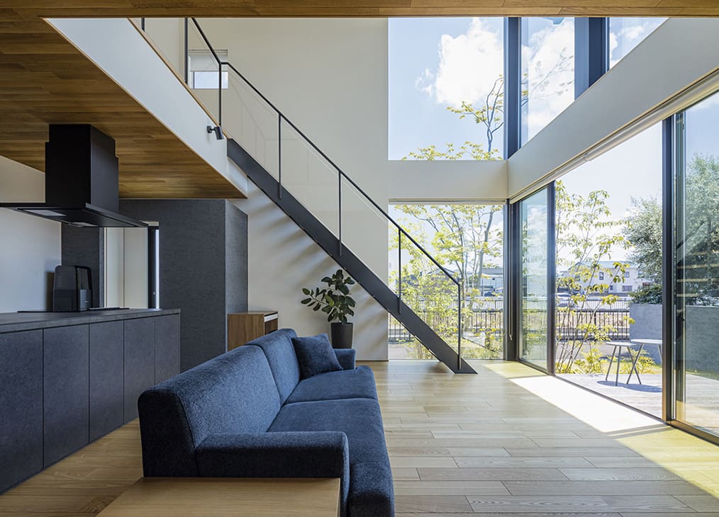 大開口と無柱リビングの開放感。思いがけない自由を感じられる家