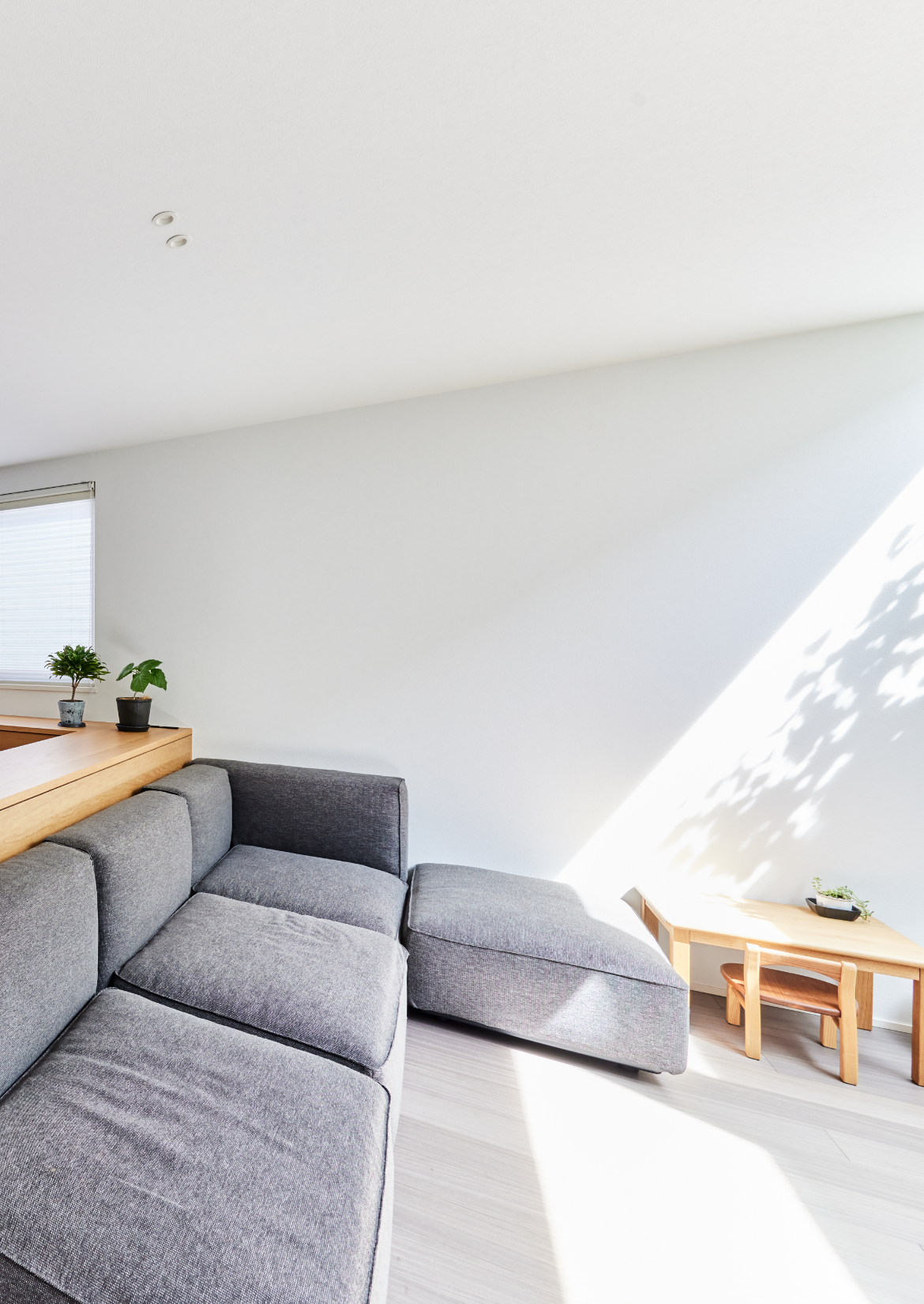 交通量の多い場所なので、外からの視線や音が気にならない家にしたいと思っていました。窓が少ない分、落ち着いて過ごせますし、安心感があります。外観のデザインもお気に入りです。