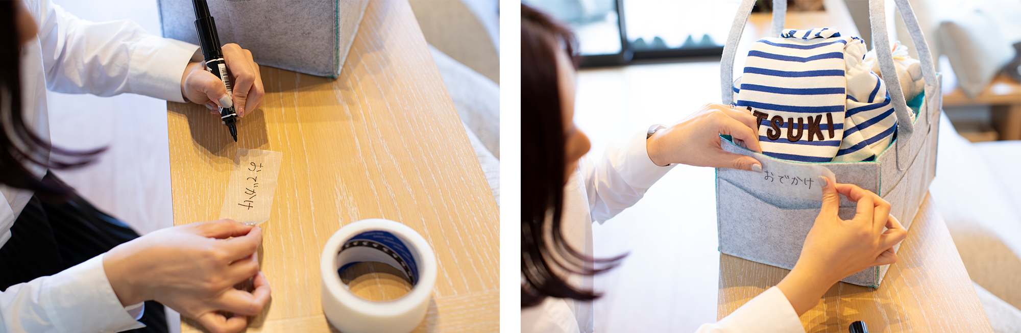 子どもの持ち物の収納を子どもと一緒に相談しながら決めると、「自分で決めたから分かりやすい」「自分のことだからちゃんとやろう」と、片づけにも主体的に関われるようになります。