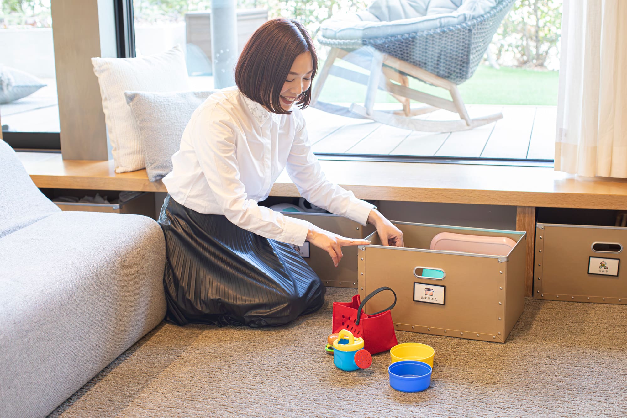 子どもの年齢に合わせて、収納の場所や中身もできるだけタイムリーに変えていきましょう。服もそうですが、おもちゃもよく使う物と、そうでもない物が年齢によって出てきます。おもちゃはいつの間にかどんどん増えていくので、定期的にいる物いらない物を選別。でも、あまり制限しすぎず、捨てるときは一度全部出してみて、子どもと相談しながらまず「捨てないもの」を決めましょう。捨てるものを決めるよりも絶対捨てたくないものから決めていくと意思決定がしやすいです。