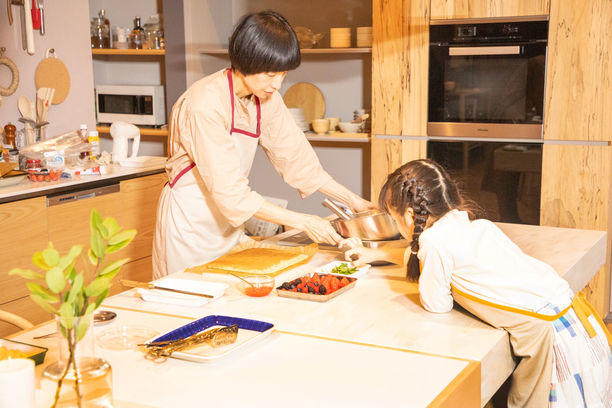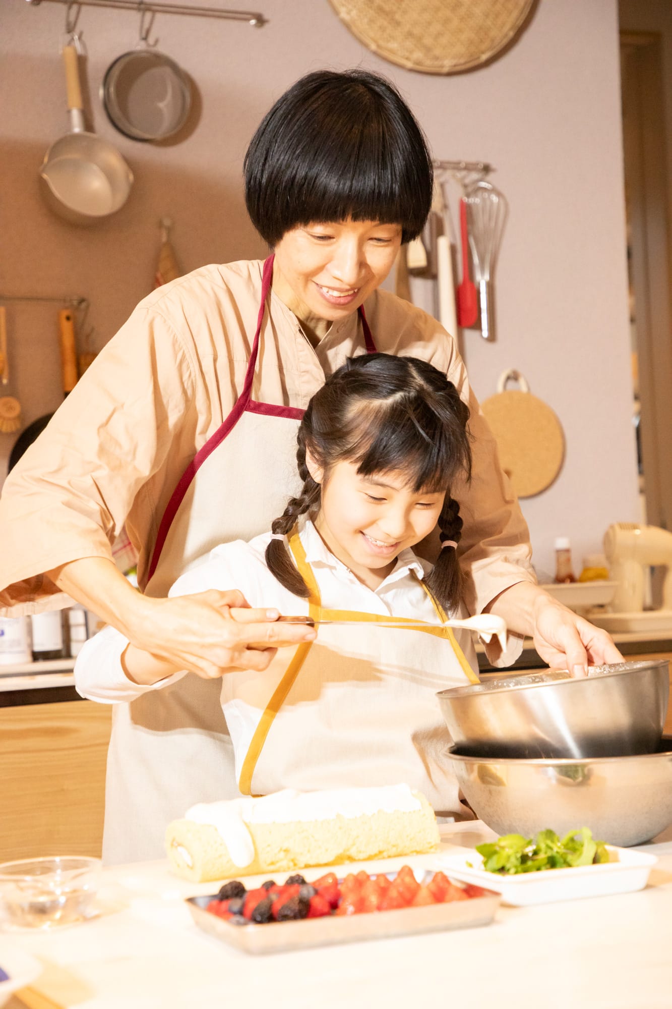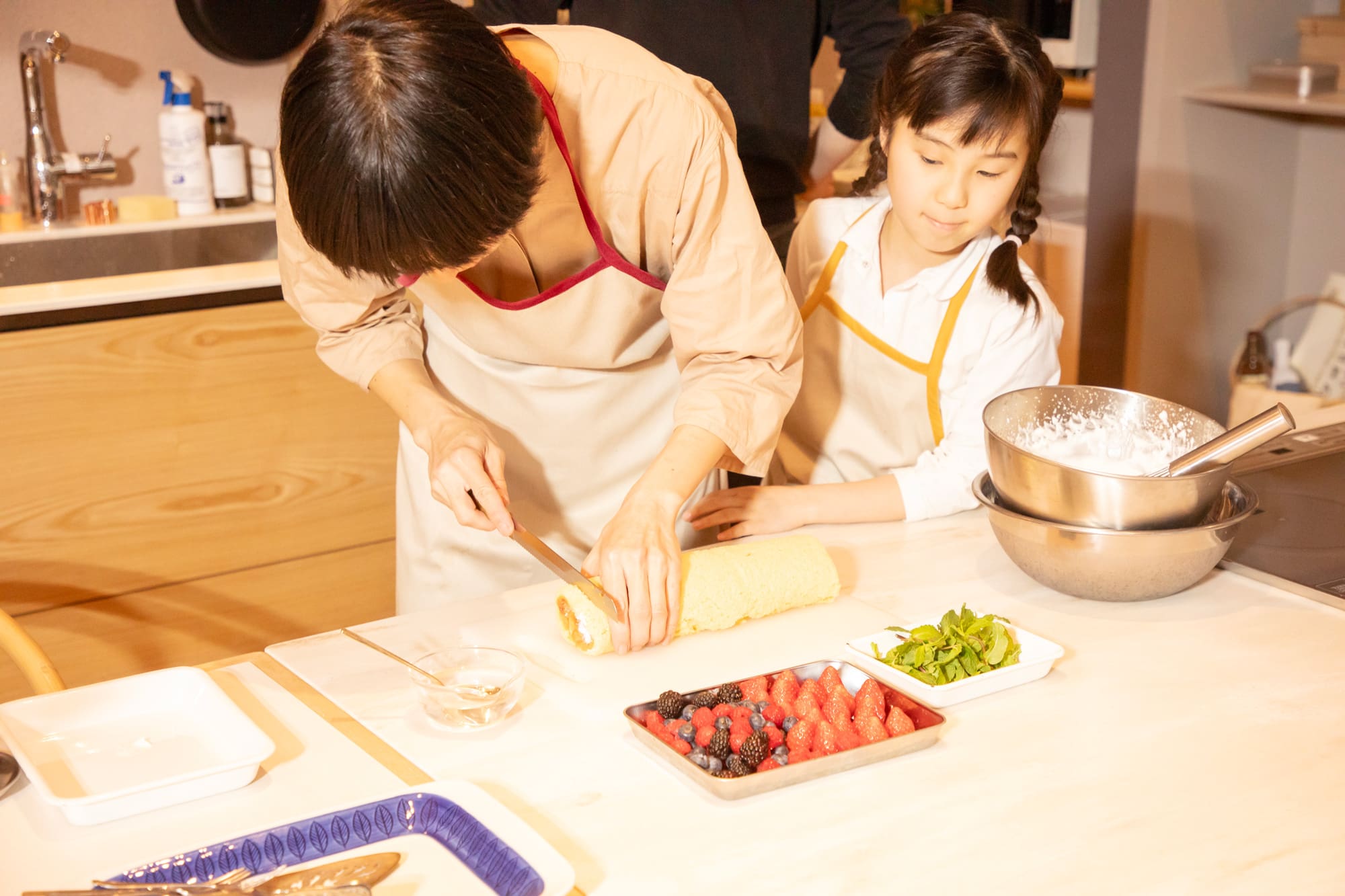 そこで、 “食を愉しむ”をコンセプトに作られた積水ハウスのモデルハウス「内藤さんち。」へ料理家の松本朱希子さんと娘の橙(ゆず)ちゃんをお招きし、小さなお子さまでもお手伝いしやすい簡単レシピをご紹介いただきました。第3回目は、クリスマスなどのホームパーティーにぴったりの「ロールケーキ」です。
