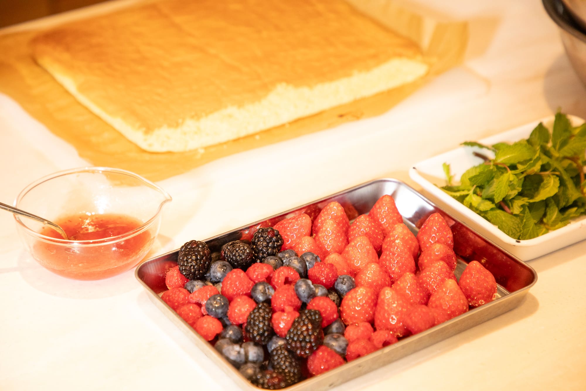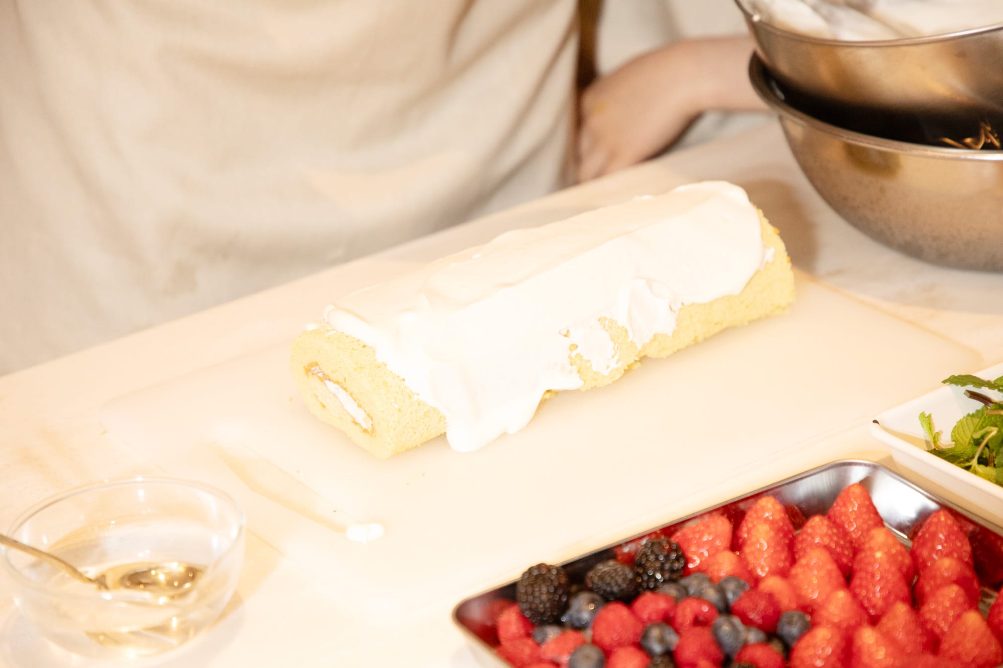 「フルーツは外の飾りとして使い、ロールケーキの中には挟まないのがおすすめ。フルーツは時間が経つと中から水分が出てきたり、食感が落ちてしまったりする場合もありますが、ジャムなら時間が経っても美味しさが変わらず安心です」