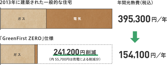 ※一般的な住宅とは、2013年相当の住宅(次世代省エネ基準断熱、一般ガス給湯器、床暖房、蛍光灯照明、標準換気)を当社で想定しています。
