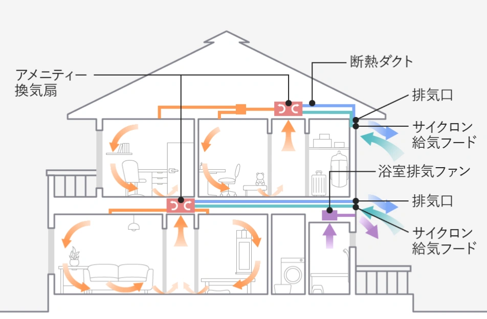 断熱と換気の両方を叶える、気密性の高い24時間換気システム。