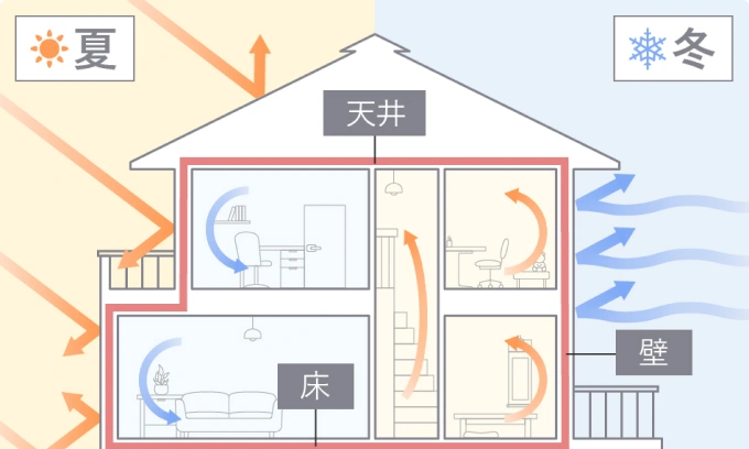 家全体を包み込むような、高い断熱性能を実現。