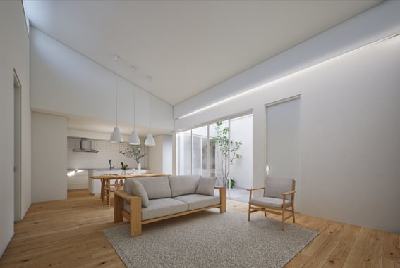 プライバシーを保ちながら屋外の心地よさを愉しめるコートハウスになっております。