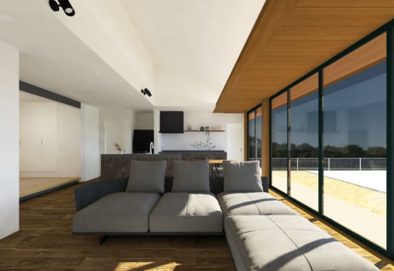 光と風が抜けるリビングで緑に包まれるゆったりとした生活を