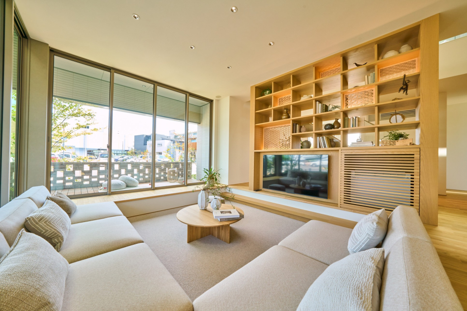 生活を意識した実用性と洗練された様々な設計提案が体感でき、親しみやすい空間構成、実用性もありながらすっきりとした透明感のあるインテリアを表現しています。