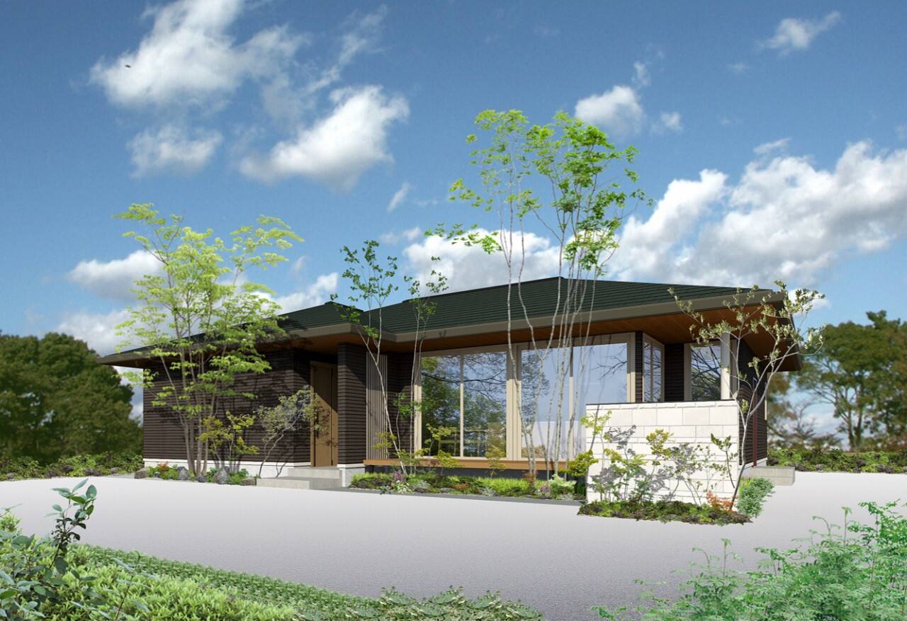 外からの視線を遮る壁によりプライバシーを守り、窓もカーテンも開けて陽の移ろいを眺める暮らしの提案です。