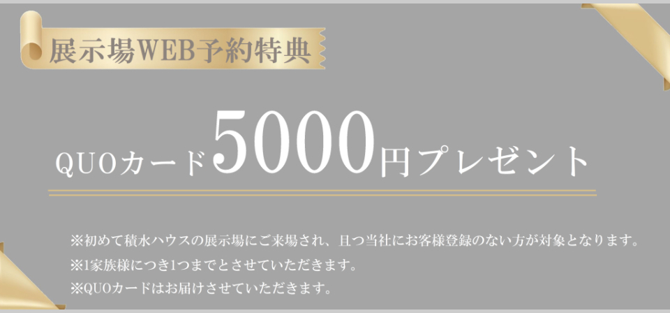 WEBにてご予約の上、展示場へご来場いただくと5000円分のクオカードプレゼント!