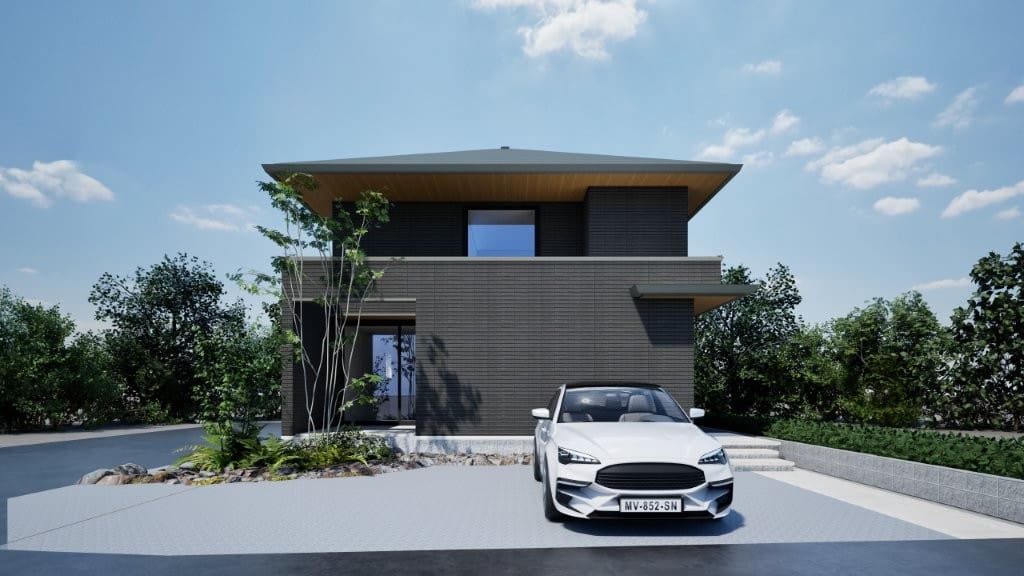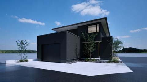 中庭から楽しめる水盤や、愛車を眺められるビルトインガレージが魅力です。
