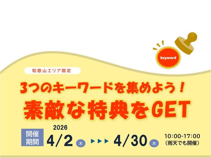 【和歌山エリア限定】3つのキーワードを集めて、素敵な特典をGETしよう!4/2(木)~4/30(木)