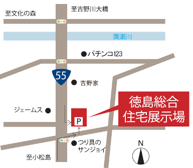 - 〒770-8025 徳島市三軒屋町外25-1(とくしま総合住宅展示場内)