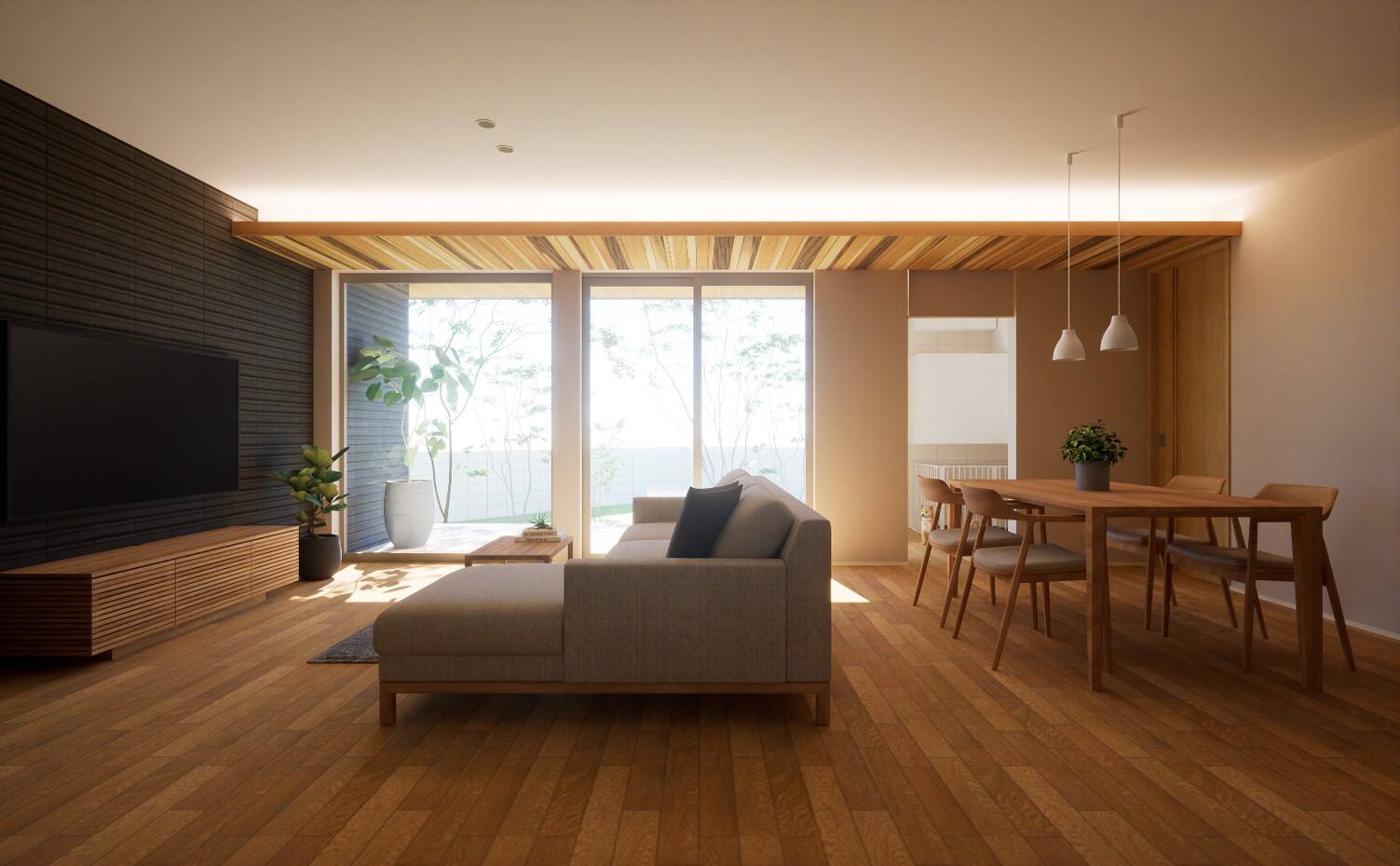 天山展示場は『これからの二世帯住宅』をテーマに、生涯に備える住宅として、安心・健康を支えるクオリティにもしっかりとこだわった住まいです。二世帯の伸びやかな暮らしを、ぜひご体感ください。