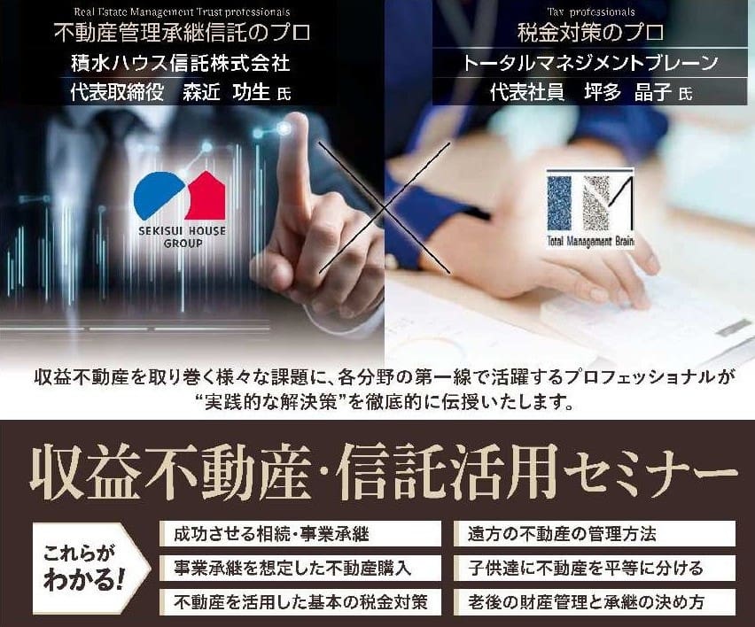 収益不動産・信託活用セミナー(福岡エリア) 土地活用・資産活用セミナー 福岡県福岡市博多区博多駅中央街7番21号JR博多シティ10階 2026/04/14(火) ~ 2026/04/14(火) ご予約・お申し込み