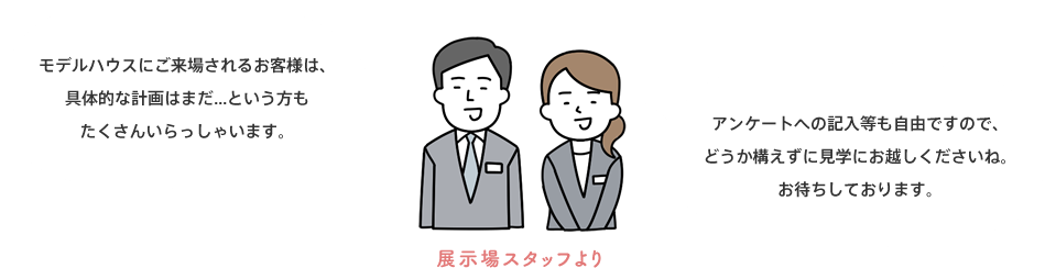 モデルハウスに到着したら、外観デザインやインテリアはもちろん、その空間の広がりや天井の高さ、質感、扉の開閉のしやすさなどにも注目してみてください。広々とした開放感や、ほっと落ち着けるこもり感、廊下や階段の移動のしやすさ…といった感覚は、数値や写真ではなかなかわからないものです。「体感できる」ということがモデルハウスの一番のメリット。感じたことはその場で簡単にメモしておきましょう。
