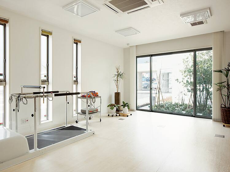 循環器疾患をお持ちの患者さんに運動指導をするための心臓リハビリテーション室。安静時心電図検査やトレッドミルによる運動負荷試験もできる環境を整えているほか、今後エルゴバイクを3台並べるためのスペースも用意しています。