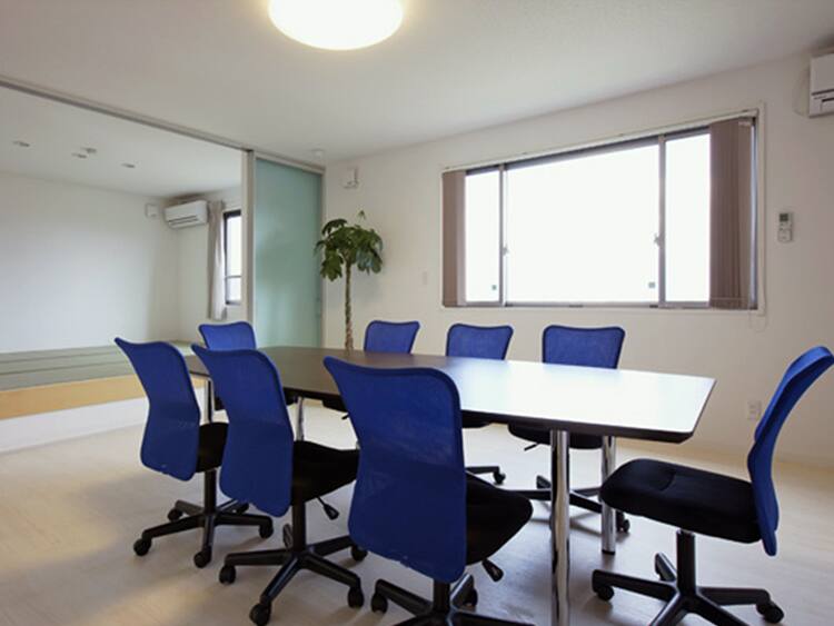 広いスタッフルームは、ミーティングや勉強会にも使える空間に。また、立ち仕事の看護師が足を上げてくつろげるように和室も設けているほか、トイレなどの水回りは院長室とは別に用意。気兼ねなくくつろげるように配慮しています。