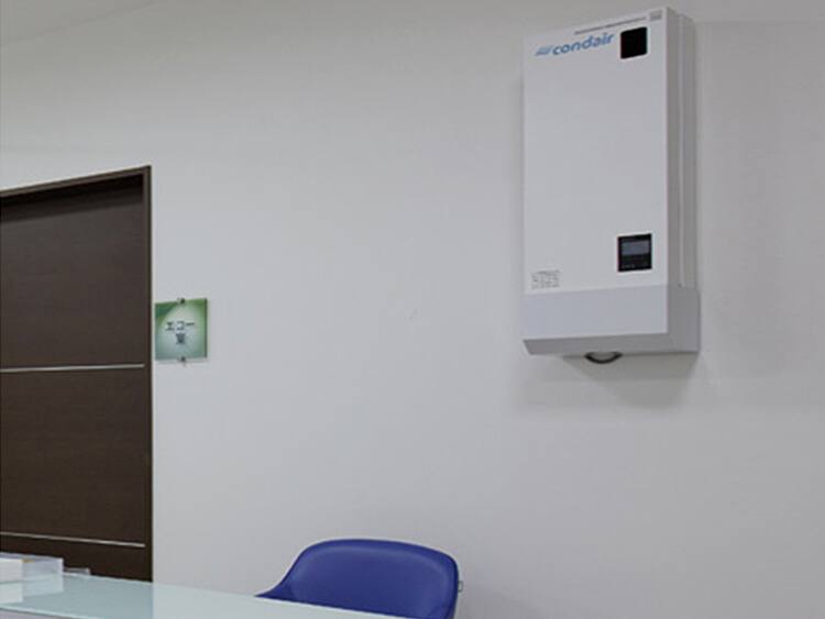 ウイルスや乾燥への対策として各所に医療用の加湿器を設置し、湿度を50%前後に保っています。患者さんやスタッフからも「居心地がいい」「目の乾燥がおさまった」といった声が聞かれています。