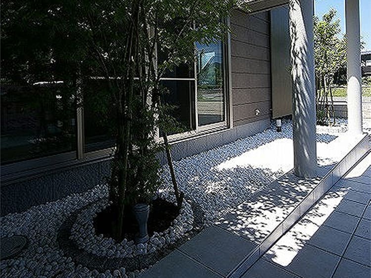 医院玄関ピロティ部と診察室の間に光庭を設け、リラックスして診療が受けられる環境づくりをしています。