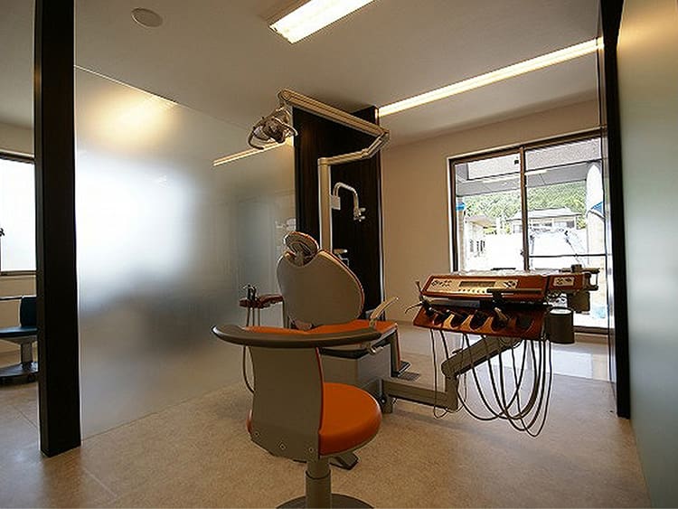 スモークガラスで仕切られた各診察ユニットはスペースもゆったり確保しています。