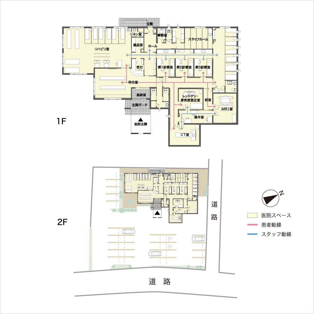 CT室、レントゲン室、MRI室の中央に操作室をプランすることで、作業効率向上と無駄のないスペースでのプランニングを実現しています。