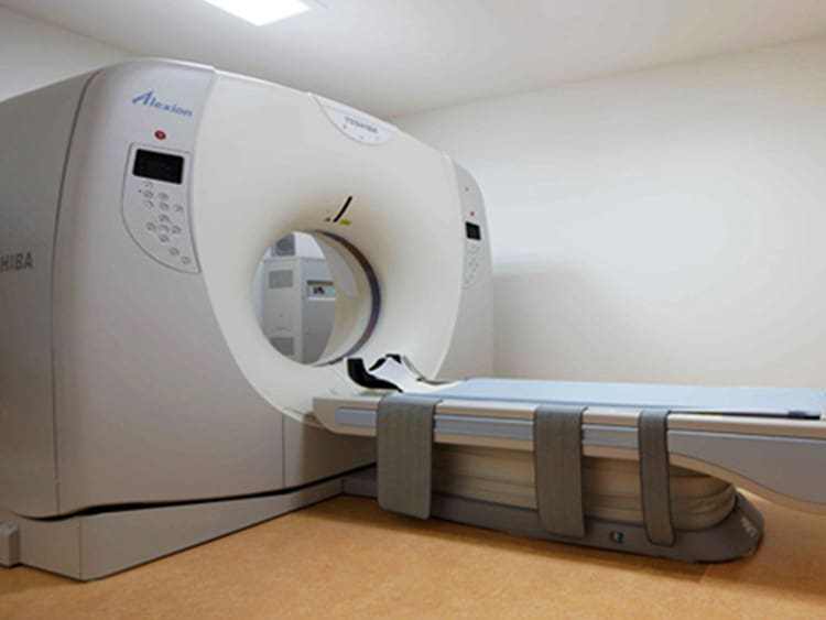 CTとレントゲンに加え、MRIも導入しています。電磁波を出す精密機器のため、部屋の配置や壁の素材、照明器具にいたるまでのさまざまな制約を、一つ一つクリアしていきました。さらに、患者さんに安心して検査を受けてほしいとの想いから、間接照明でリラックスできる空間に仕上げています。