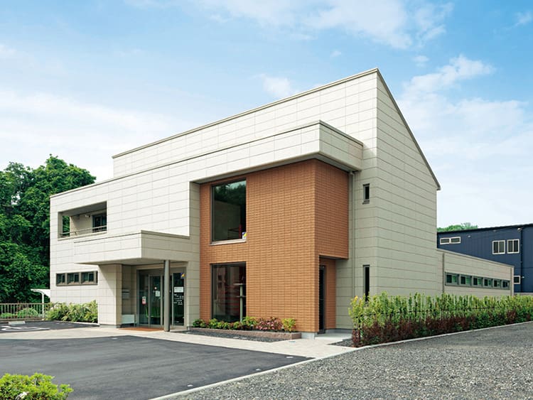 「ダインコンクリートは建物が大きいほど良さがわかるので、医院にふさわしい」とドクター。片流れ屋根のダイナミックなシルエットは、交通量の多い道路でも目立つ存在になっているそうです。