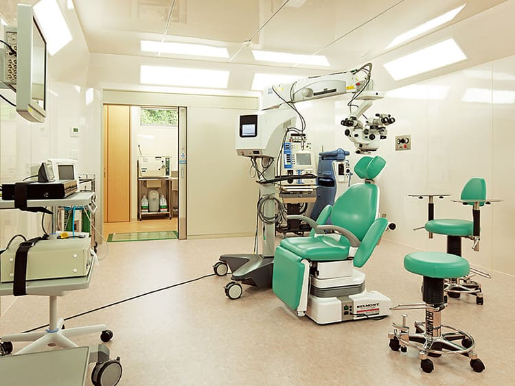 手術時は外部スタッフも助手に入るため、手術室は広めに。また、将来はもう1台手術台を増やすことも想定しています。