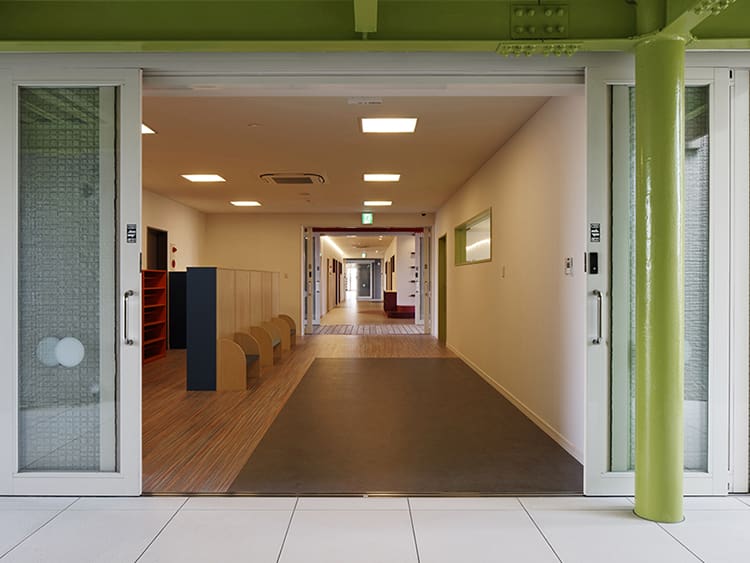 エントランスから各園児の部屋が計4棟をつないで構成されています。