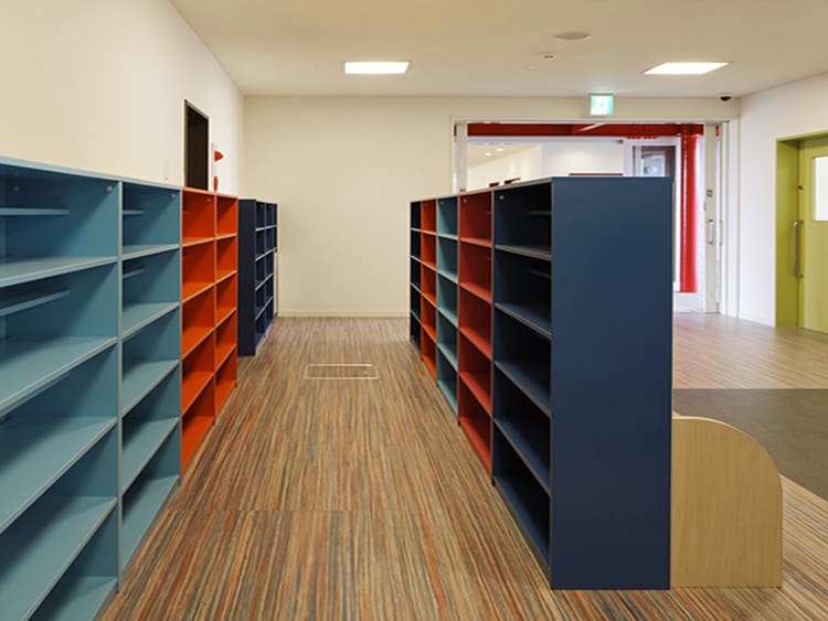 年齢による下駄箱の色変えも空間のアクセントになっています。