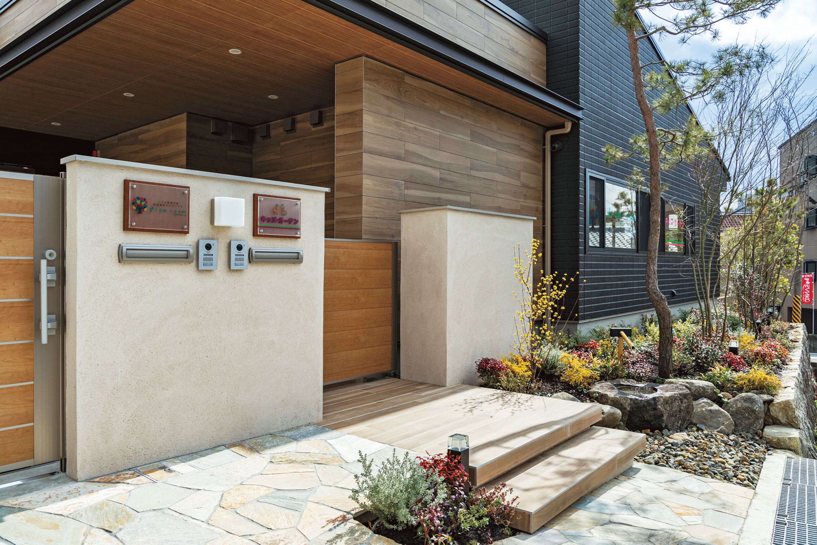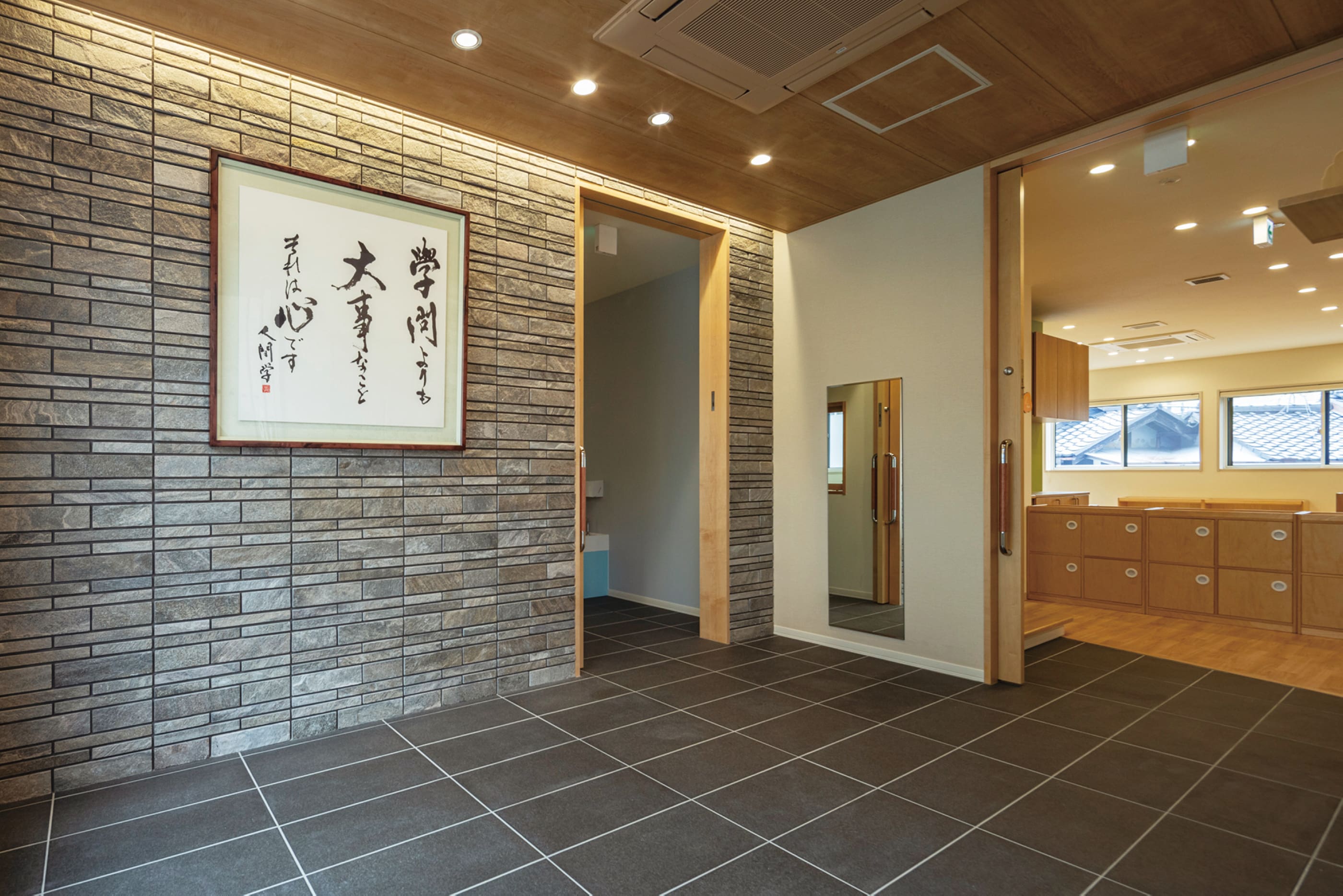 玄関を入って、左側に児童発達支援の入口、右側に保育所の入口を設置